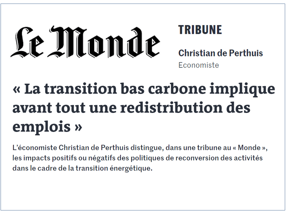 A moyen terme, la transition bas carbone implique avant tout une redistribution de l’activité et des emplois, avec des impacts positifs ou négatifs suivant les cas. L’important est de réussir dans les temps les transformations requises pour endiguer l’abondance des énergies fossiles. Si on n’y parvient pas, c’est à l’ensemble de l’économie mondiale que les impacts du réchauffement imposeront, d’ici deux à trois décennies, une inexorable spirale récessive et la multiplication des crises sociales.