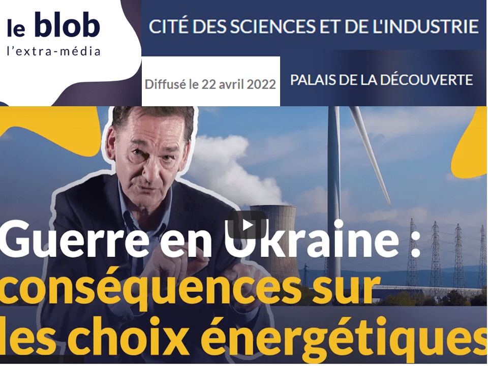 Le blob l’extra-média, basé à la Cité des sciences et de l’industrie, diffuse une vidéo quotidienne. L’objectif est de faire le pont entre la recherche et l’actualité du monde. A l’invitation de Véronique Marsollier, j’ai été invité à répondre une série de questions sur les conséquences de la guerre en Ukraine sur les choix énergétiques.