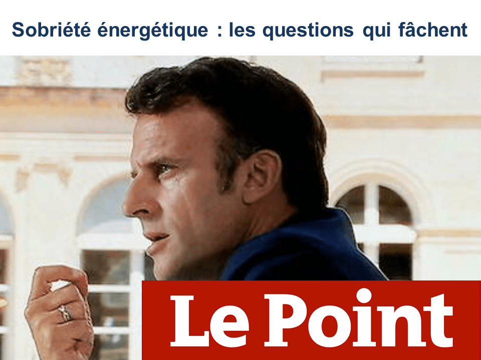 Que penser du plan de « sobriété énergétique » annoncé par Emmanuel Macron dans son interview du 14 juillet ? Ma réaction, sous forme d’une tribune que m’a demandée l’hebdomadaire Le Point.