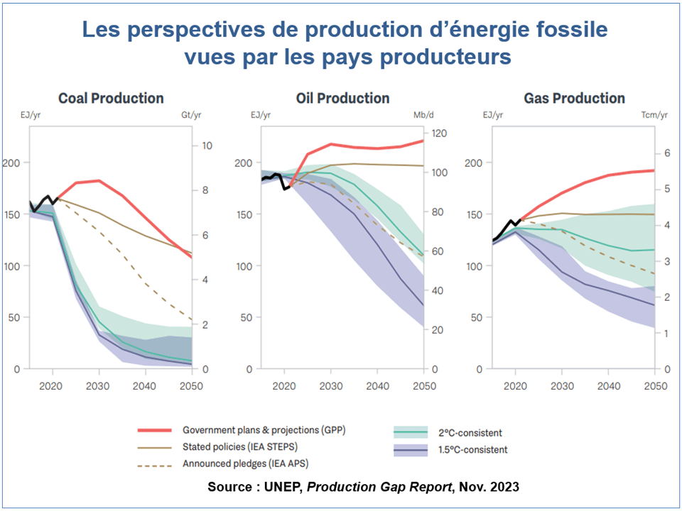 En matière de pétrole et de gaz, le désinvestissement n’est pas amorcé. Des signaux récents suggèrent même qu’on marche à contresens : engagement à grande échelle des majors américaines (ExxonMobil et Chevron) dans les pétroles de schiste ; distribution de nouveaux permis d’exploration en mer du Nord ; investissements massifs dans les infrastructures de gaz naturel liquéfié (GNL)… À politiques inchangées, l’AIE anticipe à partir de 2030 une sorte de plateau, figeant pendant deux décennies les quantités de pétrole et de gaz utilisés dans le monde à un niveau proche de celui de 2030. Le récent rapport du Programme des Nations unies pour l’environnement (Unep), basé sur les objectifs affichés par les grands producteurs d’énergie fossile, est encore plus alarmant. Il prévoit une hausse de la production de pétrole et de gaz naturel, au moins jusqu’en 2050.