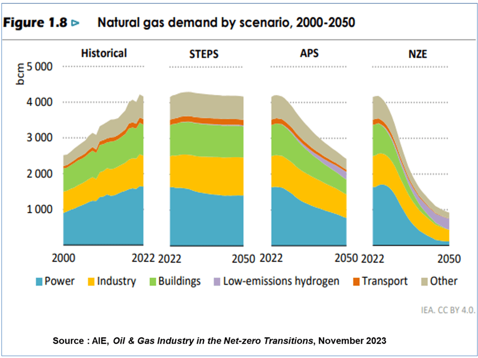 Au cours des deux dernières décennies, le gaz a fait l’objet d’investissements massifs. Les progrès techniques en matière de forage ont fortement élargi les capacités de son extraction dans le sous-sol (gaz de schiste). Les investissements dans les infrastructures et les moyens de transports maritimes ont accru celles de son transports et de son stockage. La plupart des compagnies pétro-gazières n’imaginent pas que cette époque soit révolu. Elles se sont appropriées la formule de gaz « énergie de transition », en particulier en produisant des scénarios montrant qu’on aura besoin de beaucoup de gaz d’origine fossile pour faire la transition.
