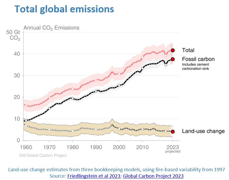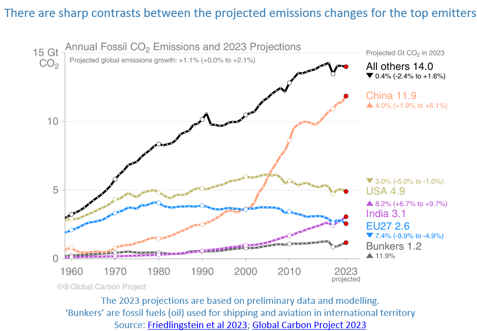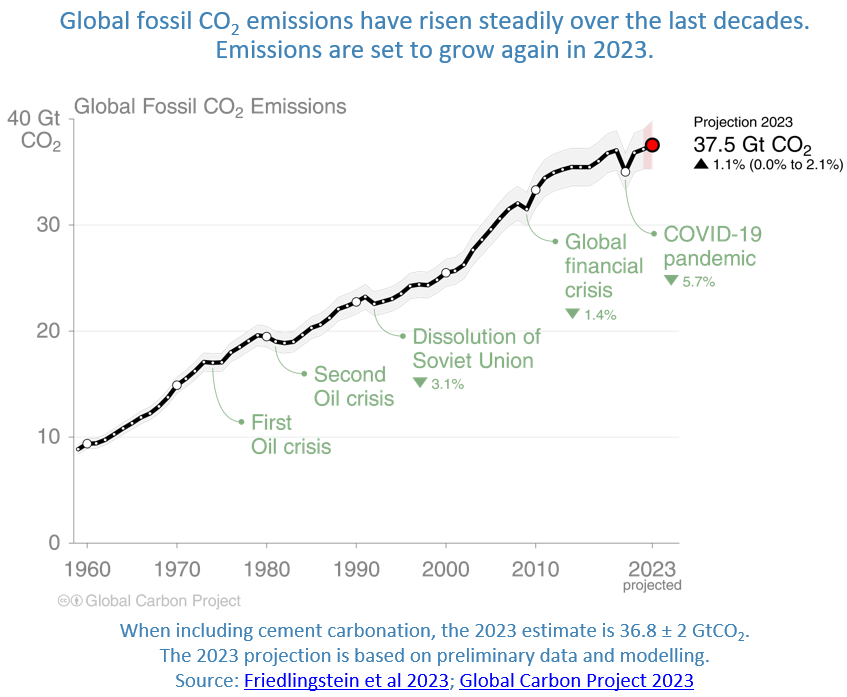 1. A 37,5 Gt CO2, les rejets de carbone fossile dépassent en 2023 le niveau pré-Covid (2019)