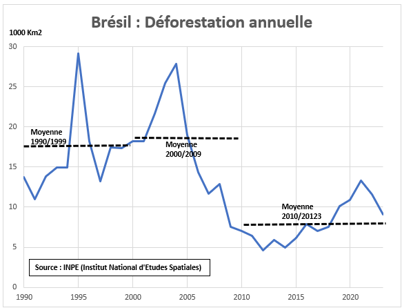 Le cas de l’Amazonie, le premier massif tropical en superficie et en richesse biologique, fait l’objet d’un chapitre particulier. Les auteurs y rappellent opportunément que ce massif, dans sa partie brésilienne, a connu une division par quatre du rythme de sa déforestation lors des deux premiers mandats du Président Lula. Un résultat obtenu grâce à une politique volontariste freinant l’extension des élevages bovins et de la culture de soja, les deux principaux vecteurs de la déforestation. Une partie de ces résultats a cependant été perdue par la suite. Aujourd’hui, le Brésil vise la déforestation zéro d’ici 2030.