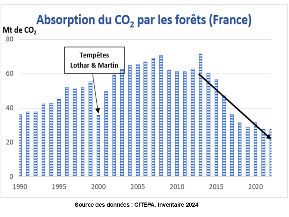 Bien que la révision à la baisse du puits de carbone national, de l’ordre de 30 millions de tonnes de CO2, apparaisse à la lecture du graphique de la P.16 du document de mise en concertation, le texte ne comporte aucun commentaire sur cet indicateur.