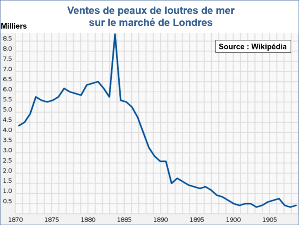 Les trappeurs commencèrent à exploiter commercialement le filon dès le début du xviiie siècle en traquant l’animal le long des côtes russes. Les fourrures étaient écoulées en Chine et en Europe. L’activité changea d’échelle après 1850, avec la cotation des fourrures sur le marché des matières premières de Londres, qui devint la plaque tournante du commerce international. L’offre peinant à suivre la demande, la hausse du prix des fourrures incita au déplacement des aires de capture vers l’est. Le détroit de Behring fut franchi. Les côtes de l’Alaska faisant à leur tour l’objet d’une surexploitation, les volumes s’effondrèrent. Une division par dix des volumes traités sur le marché de Londres entre 1885 et 1900. La pénurie d’offre attisant l’envolée des cours, les trappeurs commencèrent à s’attaquer à des stocks encore plus fragiles en descendant le long du Pacifique jusqu’en Californie.