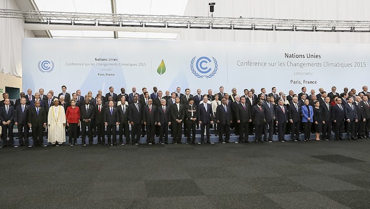 Nouveau texte d’application de la convention de 1992, l’accord de Paris est adopté en décembre 2015. Sa forme juridique n’est pas un protocole, mais une annexe de la décision de la COP21 pour faciliter sa ratification par les États-Unis. Comme en témoigne le nombre des chefs d’État sur la photo de famille, c’est un beau succès diplomatique.